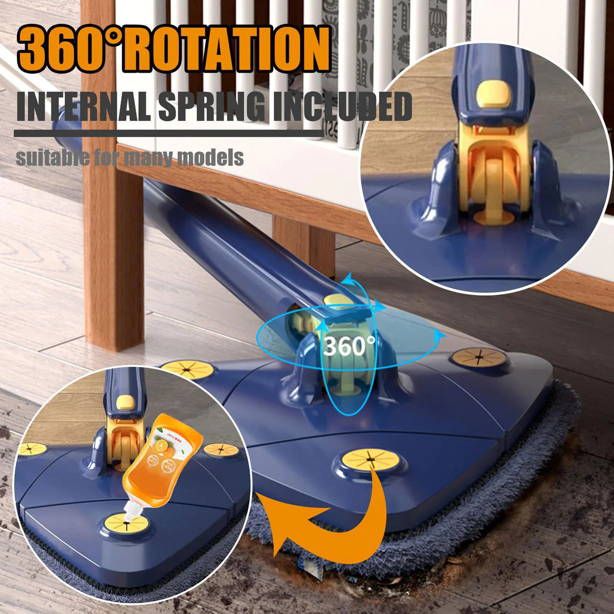 Mop inovativ CleanMaster, de mana, reglabil, rotire 360, triunghi, albastru