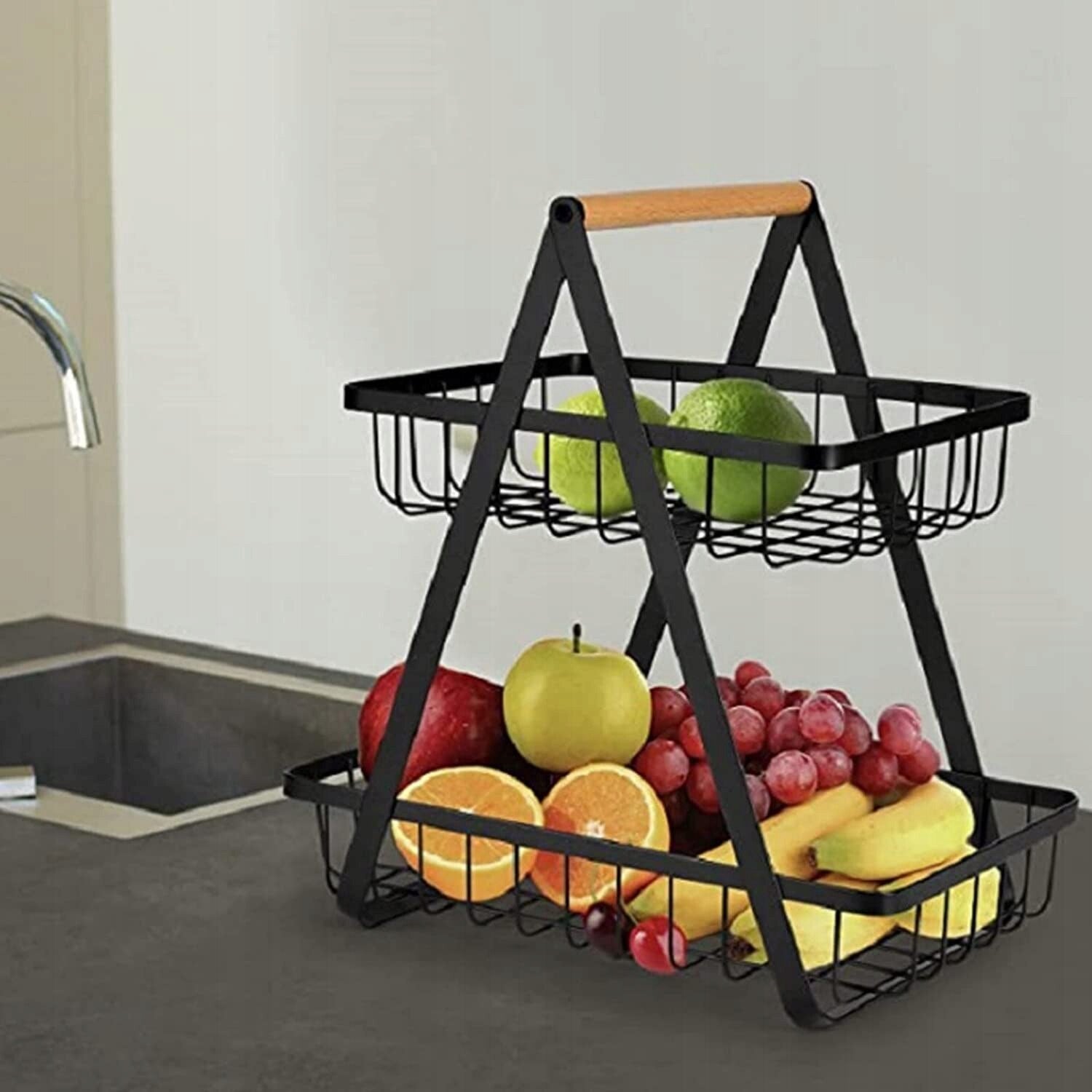 Cos decorativ pentru fructe, Metal, 30 cm, Negru