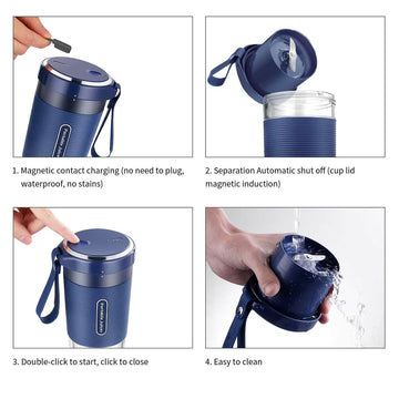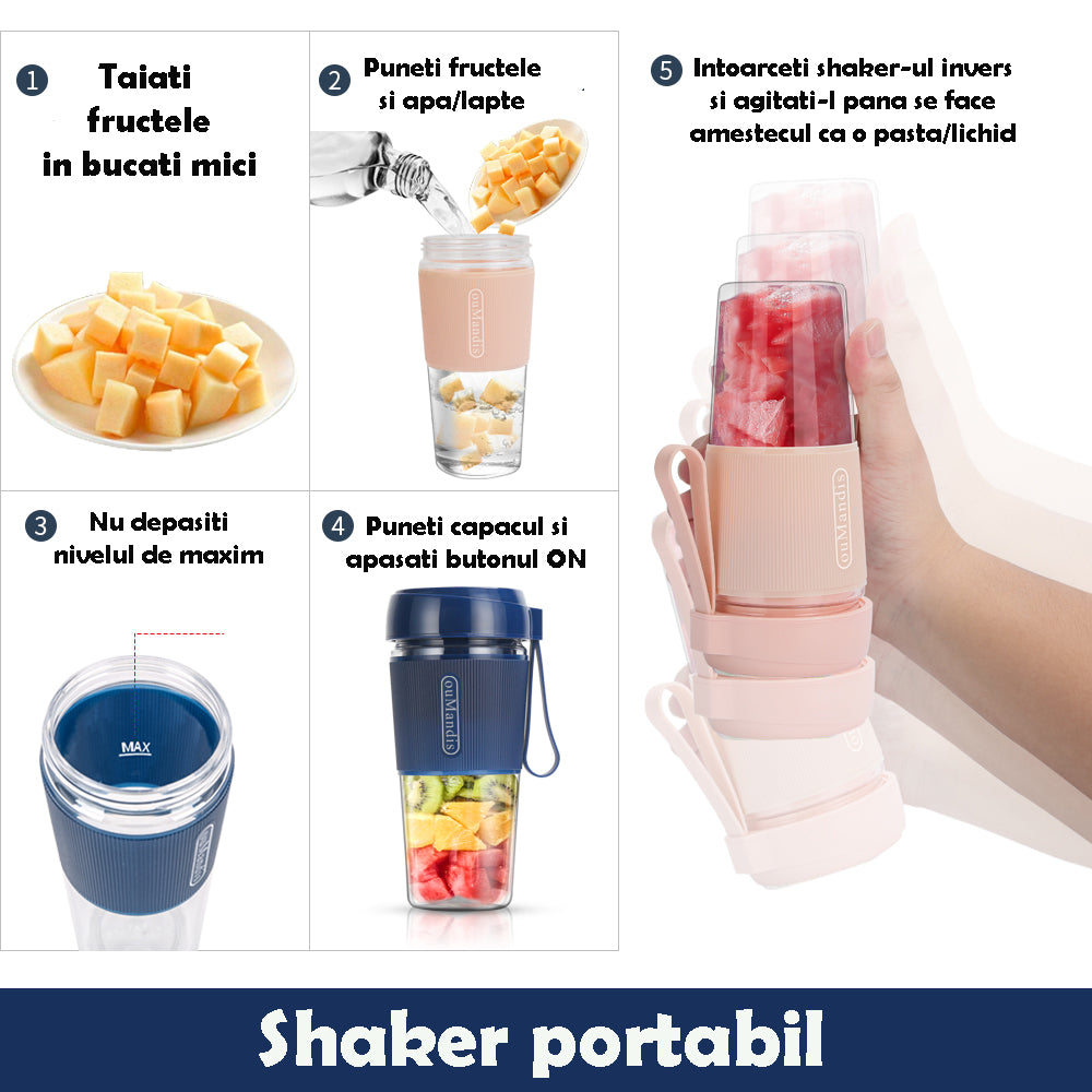 Mini blender electric NutriCup, portabil, pentru preparare sucuri si shake-uri sanatoase, incarcare USB, acumulator, 420 ml
