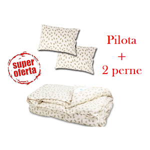 Pilota este umpluta cu puf de gasca selectionat, desprafuite si sterilizate. Pilota este casetata, prezinta intarituri pe margini. Pilota poate fi spalata.