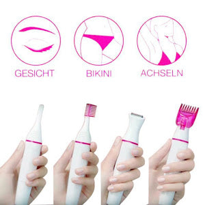 Este un aparat de ras care functioneaza electric si are dimensiuni mai mici decat un aparat normal, pentru a avea acces in zonele mai ascunse unde cresc fire de par enervante.