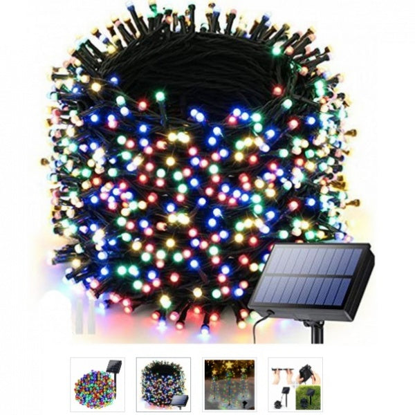 Instalația solară pentru exterior cu IP44, echipată cu 1000 de LED-uri, o lungime de 100 de metri, și cu iluminare liniară în culori multiple, este un produs perfect pentru decorarea și iluminarea exterioară a spațiilor...
