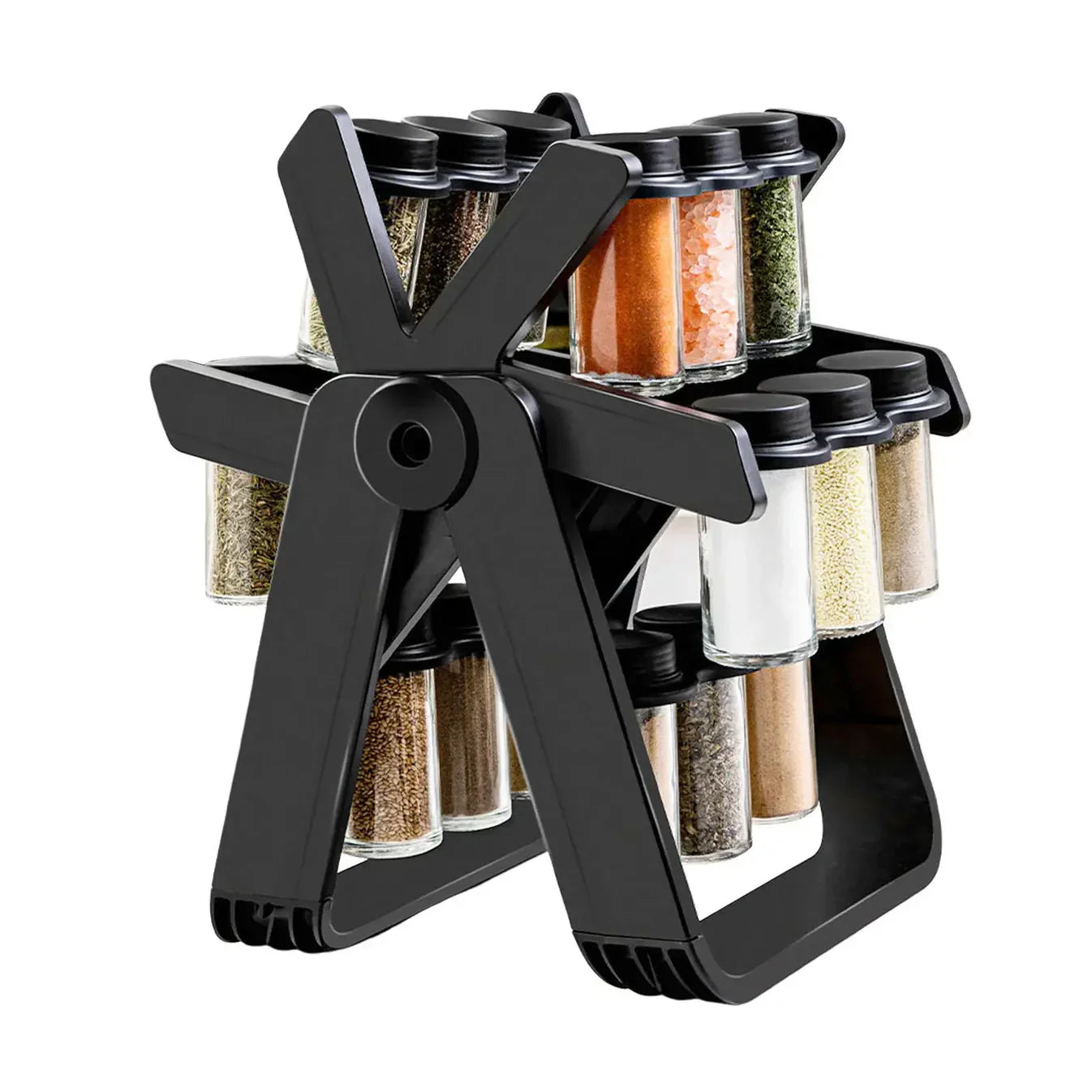 Organizator Rotativ pentru Condimente cu 18 Recipiente din Sticlă