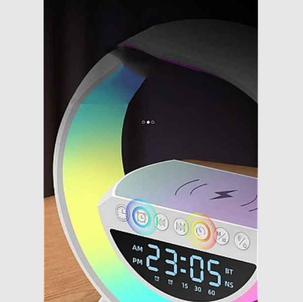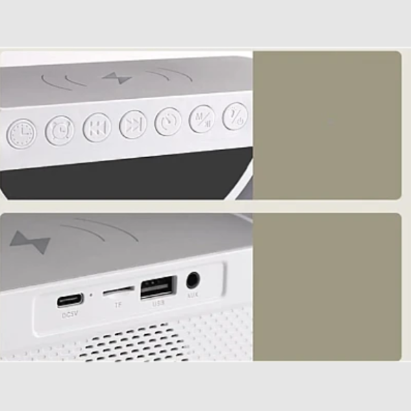 Boxa Bluetooth BT- 3401 multifuncționala: funcții 4 în 1, cum ar fi: difuzor Bluetooth + lumină de noapte + stație de încărcare wireless + suport pentru telefon+ ceas cu alarma, butoanele umanizate vă permit să controlați cu ușurință volumul, să săriți melodiile, să răspundeți la apeluri pentru a comuta modul de redare sau lumină, foarte potrivit pentru dormitor.