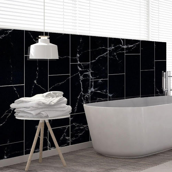 Set 5 x Autocolant adeziv decorativ cu design marmura neagra, 30x60 cm