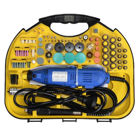 Mini-freza este un instrument recomandat pentru taiere, polizare, gaurire si lustruire (in functie de accesoriile montate) si poate atinge 33.000 de rotatii/minut, viteza poate fi reglata folosind butonul situat in partea laterala.