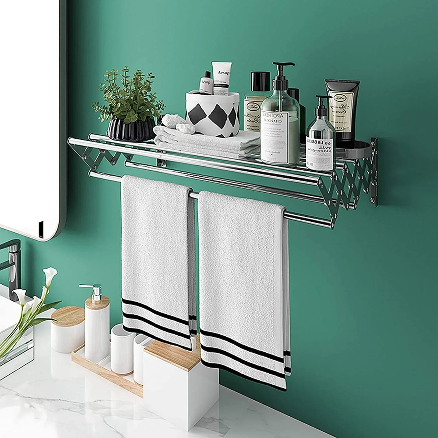 Uscator rufe din aluminiu, retractabil, cu prindere in perete 70cm