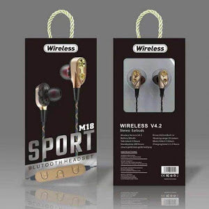 Casti Bluetooth Sport M18, 10 metri, Negru cu Auriu
