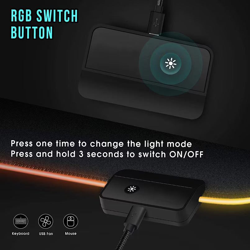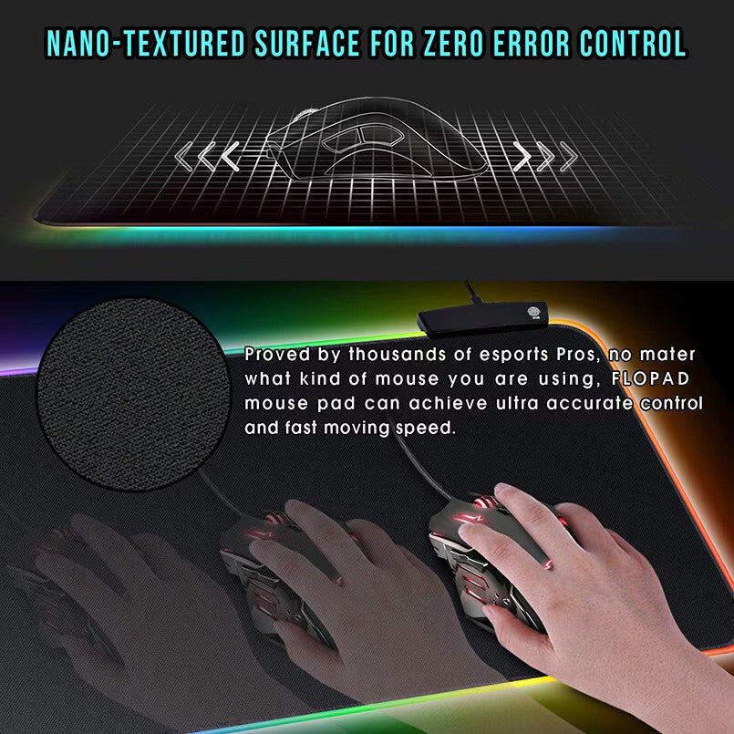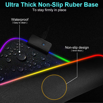 Lumini RGB: Acest mousepad are 13 lumini RGB, inclusiv rosu, albastru, verde, violet, cian, galben, alb. Acestea sunt interschimbabile si ofera un spectacol vizual uimitor;