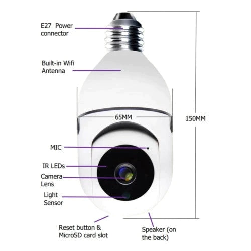 Camera integreaza cele mai noi tehnologii cum ar fi: soclu E27, senzor de miscare, alerta prin email, filmare noaptea, conectare la internet prin wireless si control de la distanta.