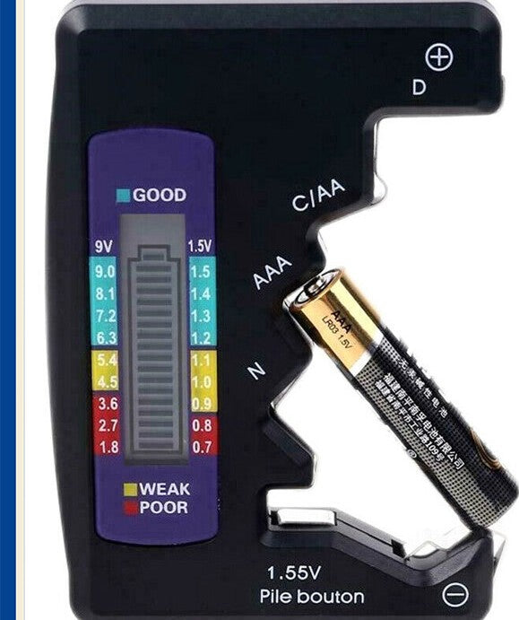 Verificator universal de baterii, tester de baterii pentru 7 baterii de tip C AA AAA DN 9V (6F22) si 1,55 V