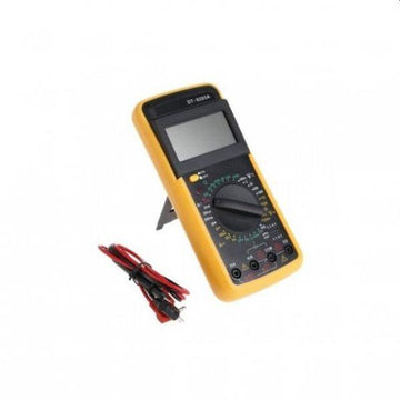 Multimetrul digital afiseaza pe ecran datele inregistrate: tensiune AC/DC, rezistenta, frecventa, diodele, test de continuitate si capacitate condensatori.