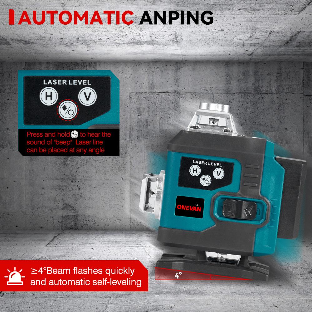 Nivela laser 4D, 16 linii, cu telecomanda, cu 1 baterie, albastru/negru
