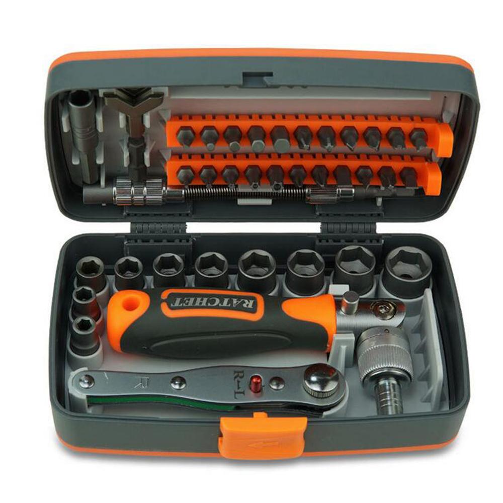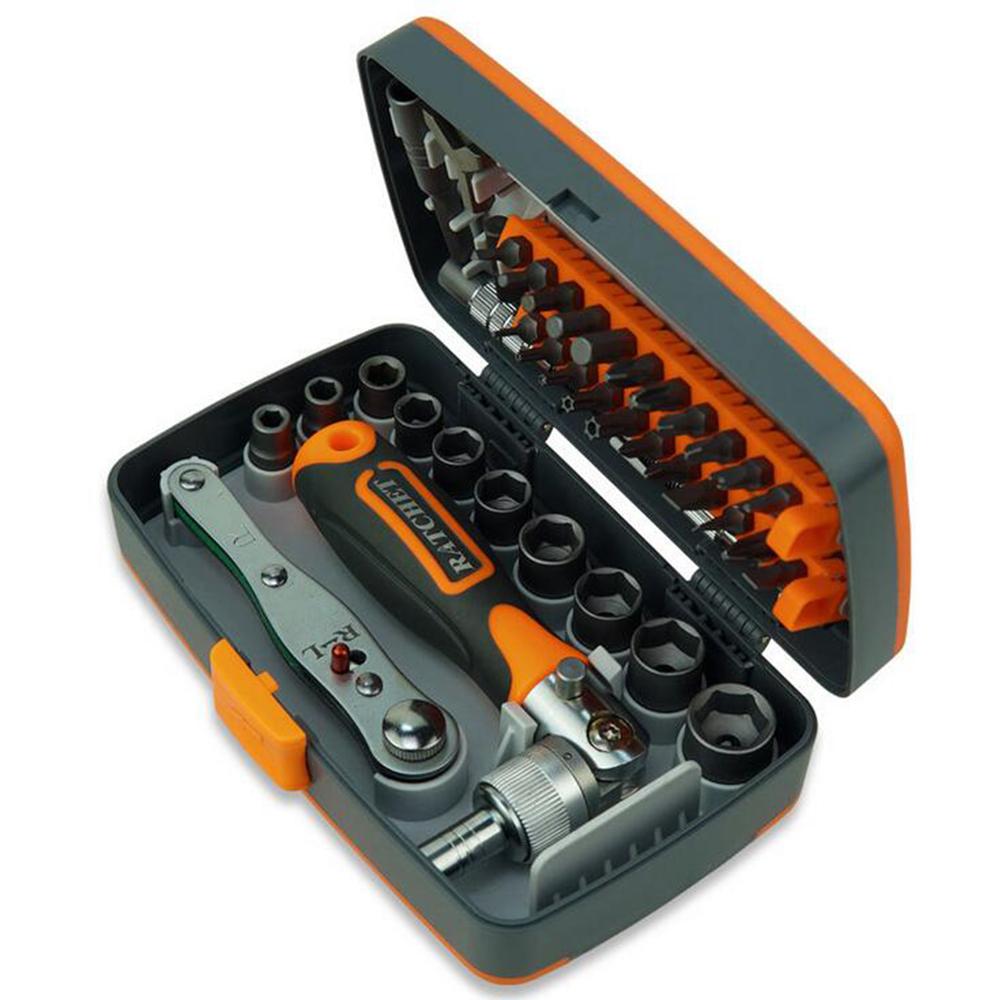 Set de instrumente pentru acasă 38 bucati, Surubelnita cu manșon, Cheie cu clichet, Cheie tubulară