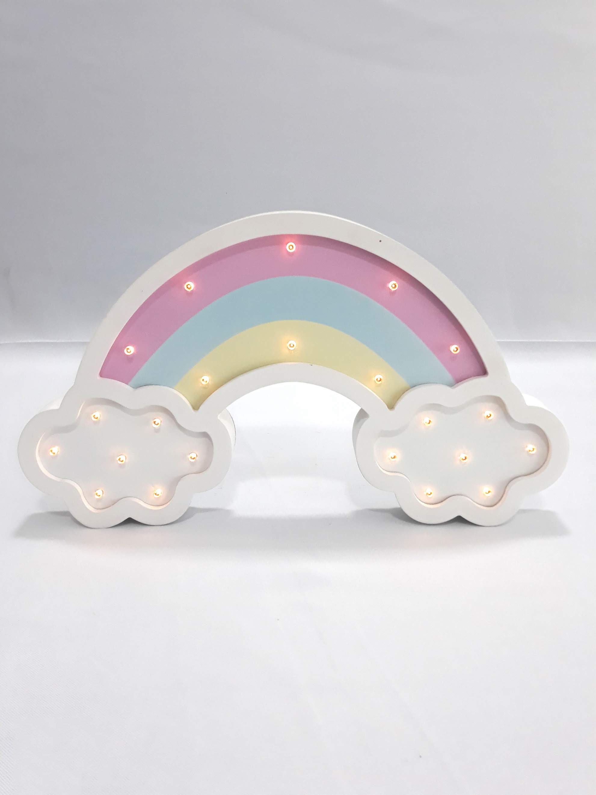 Lou este o lampa decorativa de noapte nomada in forma de curcubeu plutind pe nori pentru a crea o atmosfera magica. Va va lumina usor camera cu diferite culori de lumina care ies din fiecare forma de bec din plastic. Fabricat din plastic dur, este potrivit pentru copii si usor de utilizat datorita butonului sau de pornire / oprire din spate a produsului. Functioneaza cu 2 baterii AA neincluse.