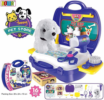 Set de joaca Frizerie de caini valiza 16 piese 25X20X9 cm