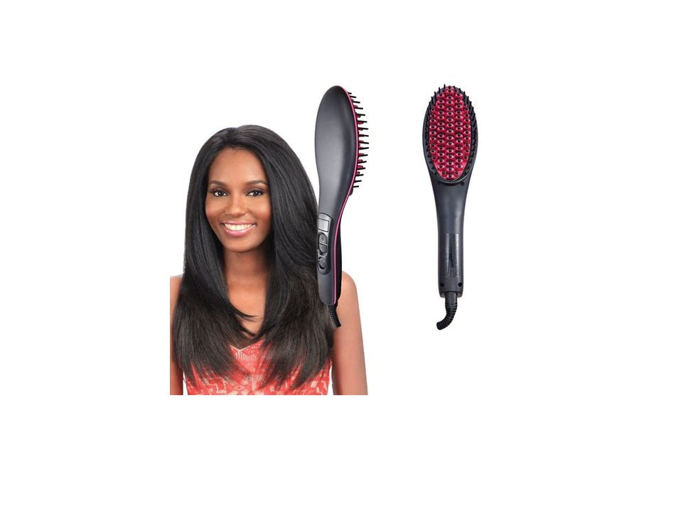 Perie ceramica de par Simply Straight LCD cu tepi ionici 3D Doamnele si domnisoarele au parte de un produs nou pe piata, ce le va usura misiunea de a-si pune in evidenta frumusetea. Ne referim la noua gama Simply Straight, o perie ceramica ce va indrepta parul rapid si confortabil. Dispune de tepi ce sunt netezi si ionici (cu alte cuvinte sunt de tipul anti electrizare a parului). Acesti tepi se incalzesc exact cat trebuie pentru a va relaza si indrepta parul in timpul periajului. Peria ceramica de indreptat parul dispune de LCD si control al temperaturii. Dumneavoastra optati pentru ce temperatura sa folositi in timpul perierii, pentru a nu va afecta sanatatea parului. Ce avantaje aduce Perie Simply Straight: - Perie pentru netezire si indreptare - Rezultate de calitate, asemanataore saloanelor profesionale - pentru toate tipurile de par - Se incalzeste pana la 450 de grade Fahrenheit (cca 235 grade Celsius) - sistem ionic, anti-electrizare - se incalzeste rapid, in 2 minute - greutate redusa Mod de folosire: - pentru a activa peria, tineti apasat timp de 2-3 secunde butonul de pornire, pana cand se aprinde display-ul LCD. - folositi butoanele +/- pentru a va controla temperatura (temperatura este exprimata in Fahrenheit) - periati timp de cateva minute pentru rezultatele dorite - NU folositi apa pe dispozitiv si nu il folositi in timp ce va imbaiati!